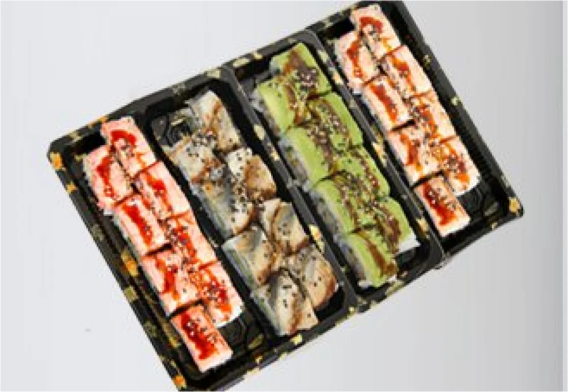 8 lineroll, 8 zalmcheeserol, 8 tunarol, 8 dragonrol